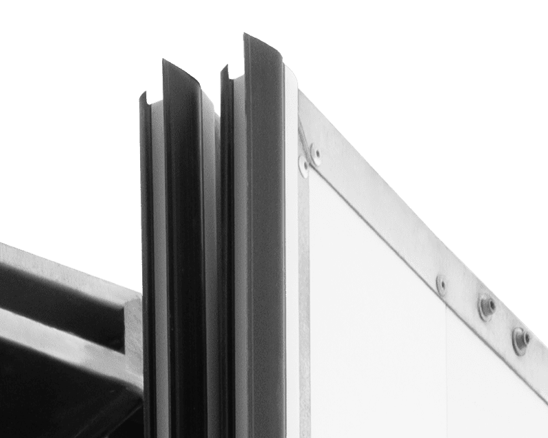 The profiles for doors are easy-to-use and co-extruded: the rigid part is manufactured in shock-resistant PVC while the soft part is made of rubber PVC , providing greater flexibility even at low temperatures.